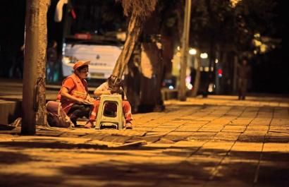 泸州女环卫工路灯下辅导孩子感动网友
